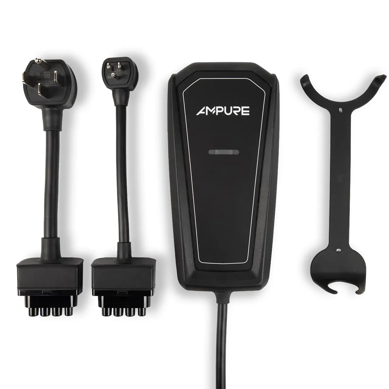 Charge faster with Ampure Go, a rugged, portable Level 1 and Level 2 EV charger built for everyday convenience and performance. Delivering up to 32 amps of fast charging, it's compatible with all EVs and plug-in hybrids sold in North America, including Tesla models (with adapter). Its 20-foot premium cable, dual-voltage support (120V/240V), and heavy-duty construction let you charge indoors, outdoors, or on the road. Fully certified for safety and reliability (UL, ENERGY STAR, IP67), Ampure Go features built-in protection against overheating, voltage irregularities, and electrical faults. Portable, easy to use, and built to last, Ampure Go keeps you charged wherever life takes you.